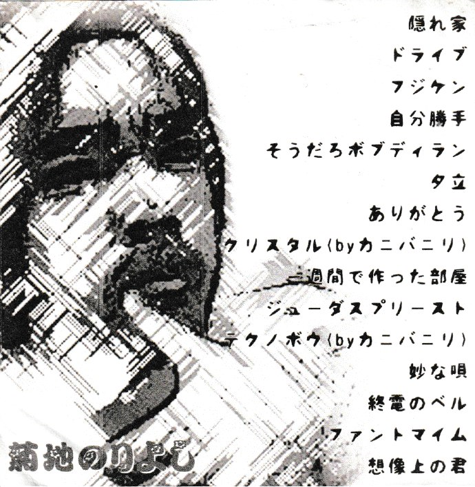 マングルマ 30〜40歳くらいの未発表音源をまとめたコンピレーションアルバム 隠れ家ドライブフジケン自分勝手そうだろボブディラン夕立ありがとうクリスタル(byカニバニリ)週間で作った部屋ジューダスプリーストテクノボウ(byカニバニリ)妙な唄終電のベルファントマイム想像上の君